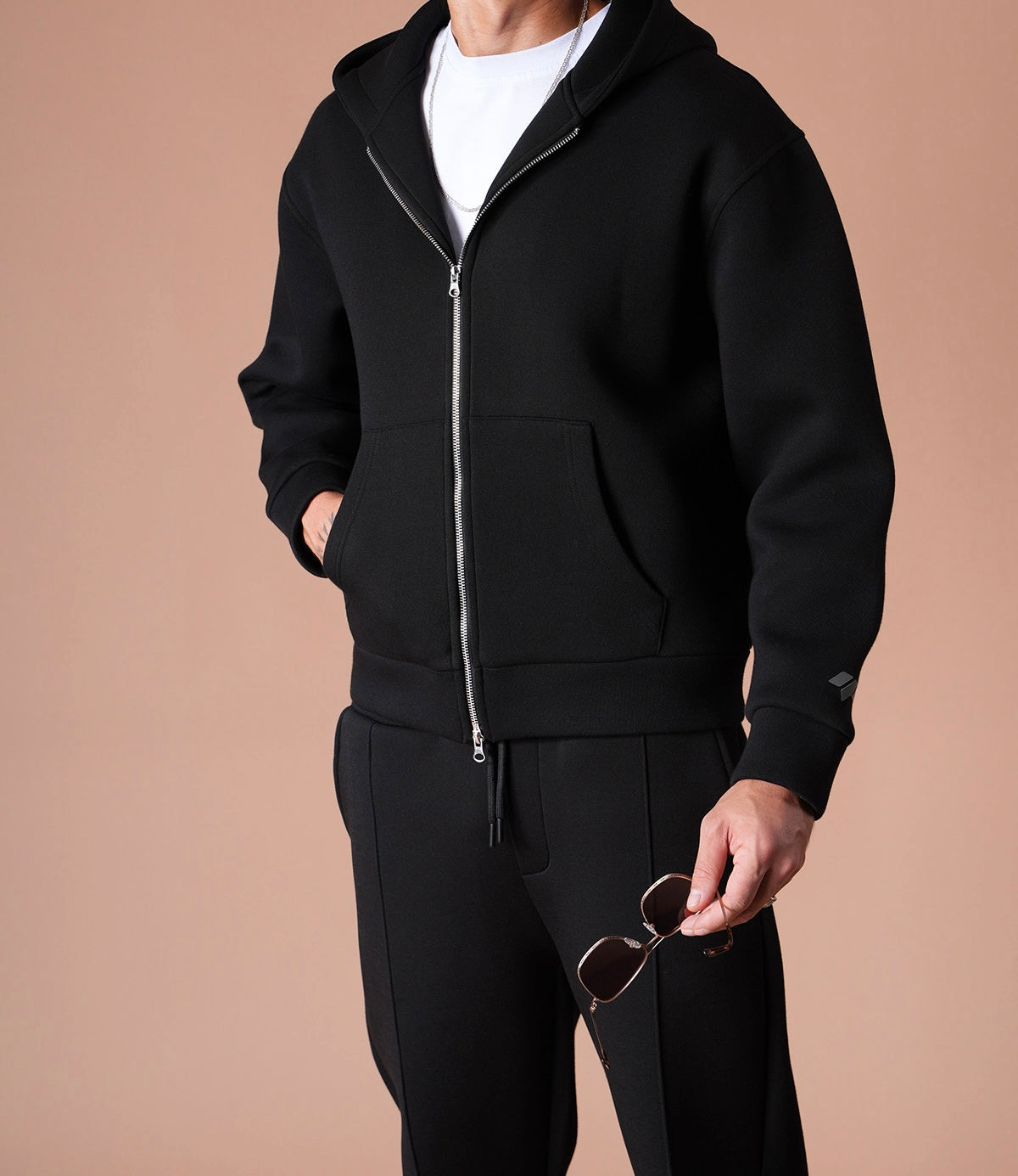 Alliez confort et style minimaliste avec cet ensemble streetwear noir, conçu pour un look moderne et épuré.