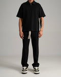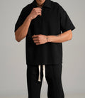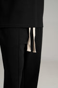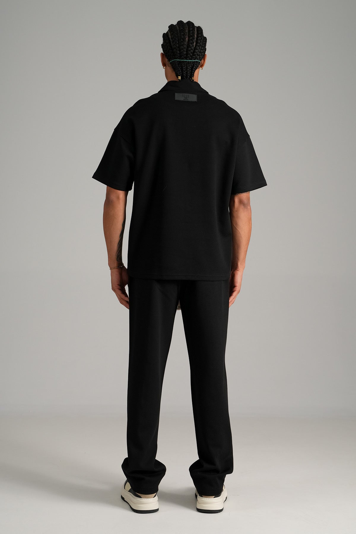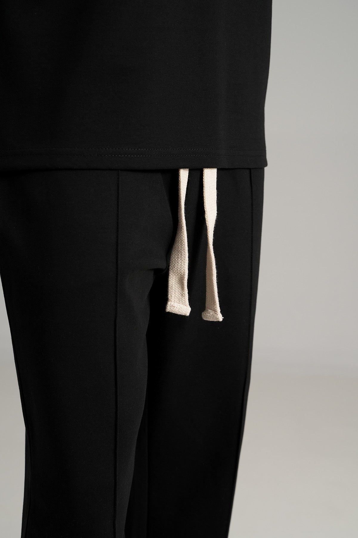 Cet ensemble noir allie minimalisme, structure et confort. Il s’impose par sa sobriété, affirmant un style à la fois discret et charismatique. Parfait pour ceux qui veulent marier l’attitude streetwear à une silhouette soignée.