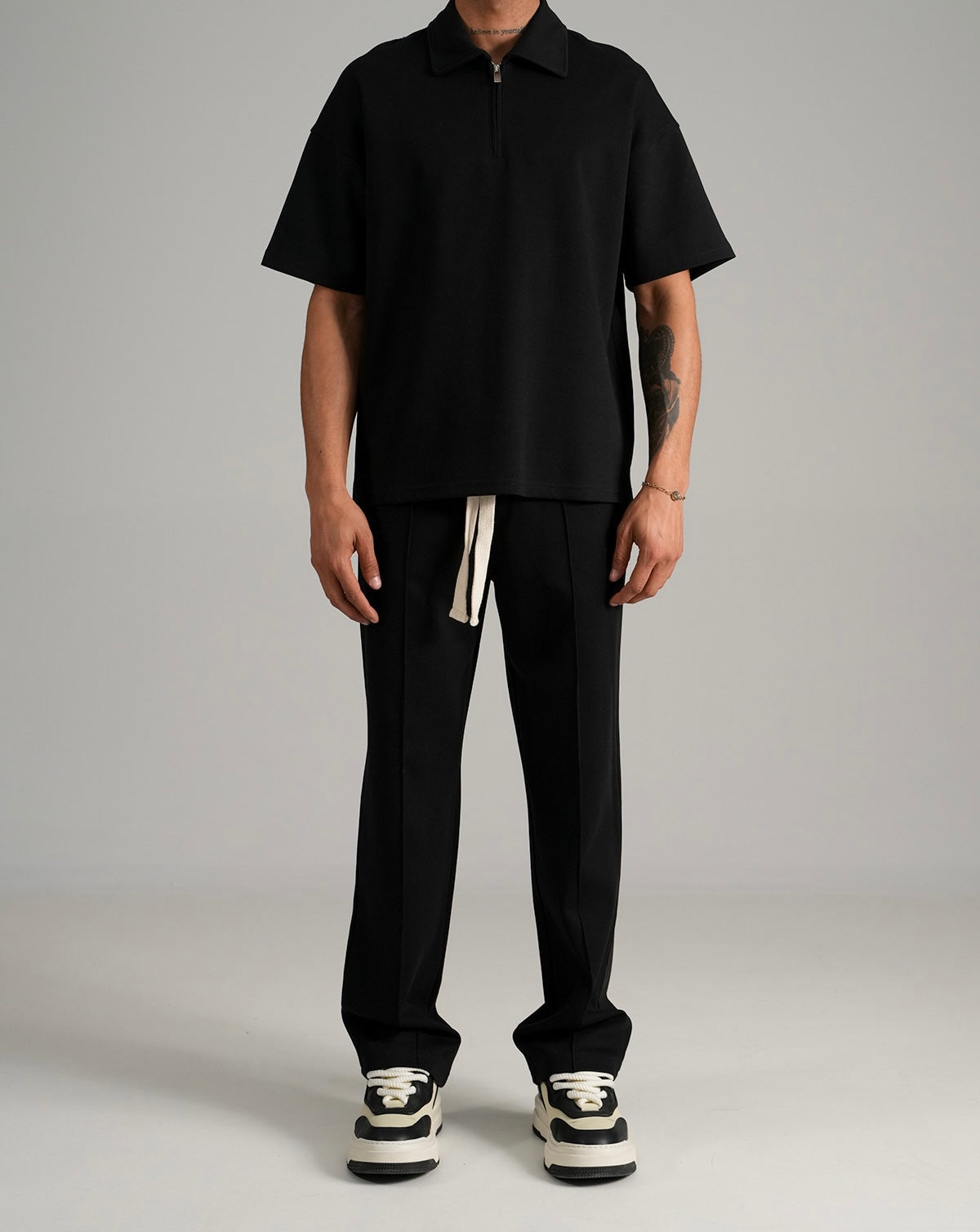 Ensemble Unisexe Noir – Polo Zippé & Pantalon Coupe Droite 🖤
