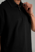 👕 Polo manches courtes zippé – Col structuré, coupe oversize, tombé net